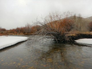 This morning we woke up to partial sun but more cold and fierce wind. I fished a different river for three hours. It was larger but mainly because of runoff. Therefore it was icy cold and off-color. Three hours and not a fish. Hopefully this was my one blank of the month.