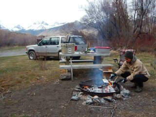 There’s nothing like car camping in the boonies of Idaho. It doesn’t matter how cold it is. When you have a big fire, a few beers, some red wine, a heap of delicious food and bed in the back of your truck life is good. We dragged the late afternoon into early evening before the steaks, potatoes and asparagus were ready to serve.