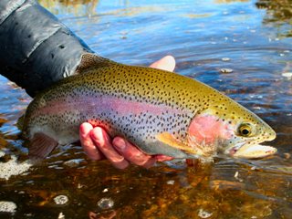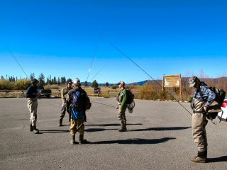 The beginning of the day was flat out freezing. Amazingly however, after a ½ hour jaunt down into the Ranch from the Last Chance parking lot we found an actively rising rainbow. Actually there were at least two – a big dude with a smaller friend I refer to as a body guard. What I mean by “body guard” is that you present your fly to the big guy and the smaller trout beats the big fish to it. You hook the smaller trout which in turn spooks the larger fish. Our group kicked back and watched as young James attempted them but after a few minutes of casts both fish stopped rising.