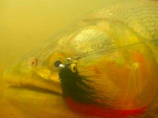 blog-Aug-3-2013-5-Golden-Dorado-Flies-BoliviaMy fly swung through the murky tailout below me.  I stripped and swiped my rod to give the massive black and red fly some action.  That’s when a huge dorado grabbed and jumped.  Things like this happen so fast that I barely saw this fish.  But he was big, bigger than any fish I hooked this week.