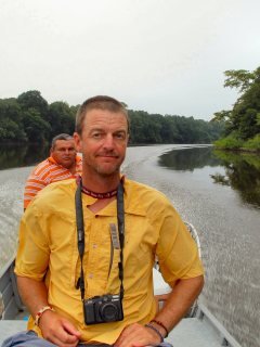 We rolled out as usual. And as usual, about ten minutes into the drive I was lost as hell. Moe zigzags through lagoons, rainforest, unheard of rivers etc so fast I don’t know how we ever get back to camp. It’s really cool. This morning we didn’t go as far as normal because at 2 PM we were returning to camp so Becky could join Linda and tour a village and I could meet up with Mark and go catfishing for the final two hours of the trip. Even though we made a short run with Moe, we were still in the boonies!
