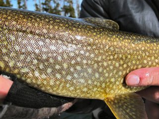 The before sunrise drive to Jenny Lakewas spectacular. There were elkeverywhere and several enormous bugling bulls crossed ahead of my Explorer. But we caught only one lake trout in four hours of fishing. Rick and I need to be at Jenny at the right time. Usually the right time for big lakers is when the weather is turning for the worst. Unfortunately there’s no big weather change in our forecast until late next week. Late next week Rick and I will be in Manitowish Waters, Wisconsinchasing musky on the fly. At least we should land some three footers there!