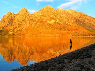 Rick Schreiber and I went back to Jenny Lake before sunrise this morning for a reason, something I didn’t mention in yesterdays blog. We saw a big fish, a lake trout over three feet long. The sighting didn’t happen only once but in fact we saw this big fish several times. But he showed no interest in our flies.