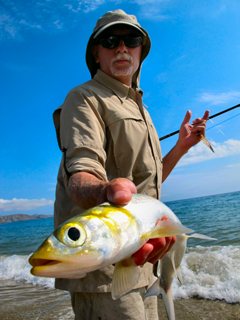 On the first beach Sammy and I destroyed the ladyfish.  We caught one literally every cast.  Ladyfish don’t get much credit but I can attest they are a great fun fish to catch on the fly.  I always pack a 7-weight to Baja and I used it this morning.  I had an absolute blast!