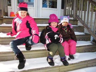 Granny and I are staying in Wolfeboro, New Hampshire this week because next weekend we have the Somerset, New Jersey Fly Fishing Show. Today I spent the day with my nieces. The day started with a nice hike down to the family camp where many blogs took place this summer. The girls had a blast despite extreme cold.