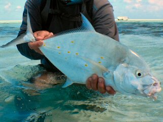 One can’t explain the beauty of these Indo-Pacific permit. I’ve known of them for many years. I knew exactly what they look like from pictures. I’ve seen a few swimming but neither does justice for how spectacularly fine-looking they really are when they are right before your eyes. We admired Bens yellow permit for a couple minutes before releasing.