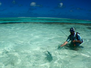 The fish were finally around and it was my turn to get busy. I stared down my flat and off my edge until finally I saw some action. It was a ray and I started dreaming of an easy permit hanging off its back. I waded within reach and indeed thought I saw a fish hovering below looking for an easy meal kicked up from the ray. The best approach is land your fly on the ray and let it roll off the back. Then strip. I did just that and for a second I thought I had my permit.