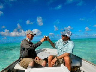 After I released the green spot we didn’t see much. Other than a few scrappy oddball fish like spangled emperors and pompano, after our three fish run between noon and 2 the fishing came to a halt. There were no complaints for us though. Benny Boy nailed a permit and we had some excellent side catches mixed in. We had a few celebratory beers tonight and enjoyed the stories around the dinner table. Stay tuned for tomorrow!