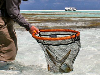 Once again, permit fight hard. This was another 7lb yellow permit that looked like a twin to Scott’s fish on the first day. It took Ben a good ten minutes to yank this one from the deep water up the ledge onto the flat for the net. Three efforts were made without success. We were nervous until finally the permit came up tired enough for Nick to fit him into the net.