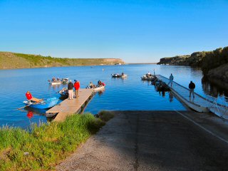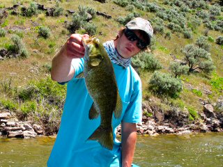hour. Although these aren’t big smallmouth bass compared to what you often catch in the Midwest or Canada, these are good ones for Ririe. Our day remained steady and by noon we had five respectable smallies. Then, all in about a 15 minute period, I landed two 14” smallies and