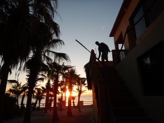 Gary Bulla Baja trips start early. Granny and I are visiting Gary while he has a group of 12 clients. He bases out of Baja Joes Hotel and his staff had coffee and breakfast on the table at 6 AM.