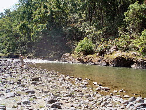 Jeff Currier has been to India in search of Himalayan Golden Mahseer (Tor putitora) several times starting with his wildest expedition in 2002 when he and his wife Granny rode the busses, trains and hitched through this amazing region for three months. Every trip to India leaves incredible memories, but none quite like his trip in 2008. In 2008 Jeff traveled north of Delhi with friends Misty Dhillon, owner of the Himalayan Outback and TV host Chris Bailey of “Reel Outdoors”.