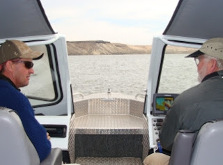 Andy’s success would explain why his boat is the nicest jet boat I’ve ever fished out of. This is a boat most hard core angler’s dream of owning. Erik and I met Andy at around 10 this morning on C. J. Strike Reservoir a few miles from Bruneau, Idaho. C. J. is a well known smallmouth bass and black crappie fishery, yet it’s about three weeks too early. Instead, for us today was mostly a boat ride and when we did fish, it was all about struggling with the wind. Not so much the fly casting, but rather handling a big boat to keep us where the fish might be.