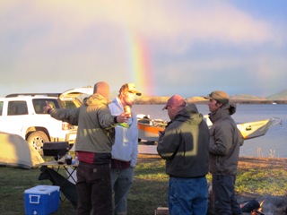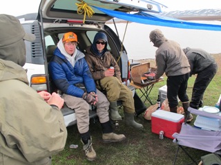 At the weigh in tonight it was evident that carp do not love the cold anymore than we humans. There were a total of four teams that registered some carp. Most teams caught only one while one miraculously found a hot spring of some sort and caught three. It was such a tough day that we are tied with 16 teams for last place with a BIG FAT ZERO! Even worse, we cooked and ate dinner in pouring rain and now I’m bundled up in my sleeping bag in the back of my truck listening to the rain outside. Monsoon Currier strikes again!