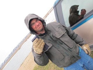Yikes! It was brutal out this morning. The wind was cranking out of the northwest. The temps were in the 30°’s and not a carp was tailing. The good news however is that our other teammate (the tourney consists of three person teams), Trey Scharp, arrived in the middle of the night and today we were able to practice together.