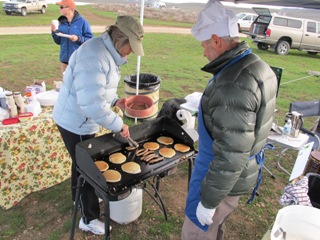 It’s a good thing I don’t care about weather when it comes to a fishing tournament because we awoke to temps in the 30°s and the frigid wind was back in full force. Other than a little sunshine that wouldn’t last long, you could say it was just plain ugly out. Nonetheless me and the team were stoked to compete. Trey and I whipped up some coffee and woke up Ben then the three of us headed to tournament headquarters for a special pancake breakfast. Remember this is a fundraiser for a guide in need and for $5 you get all the pancakes and sausage you can eat. This is on top of the $50 a head entry fee.