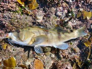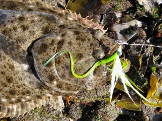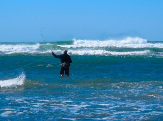 e didn’t make first cast until almost noon. When I set foot off the beach to wade, the water was absolutely freezing and the surf was big. Fortunately the wind was out of the east making life easy for casting and the high tide was dropping fast. Gradually the big waves shrunk and rocks that protected Toms halibut lies began to show themselves. Regardless of things looking good however, the four of us cast relentlessly for hours but not even a strike.