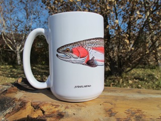 A year ago my popular coffee mugs were close to extinction.  Now, thanks to my friend Harvey Cohen of the Fly Fishing Show Room, they’re all back.  Even bigger news, now they’re available with any fish you want.  Anything!
