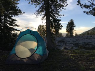 I was impressed when I returned to camp.  Those young nieces of mine had both their tent and my tent already set up.  The sky was such a rich blue we held off on the rainflys.  I unloaded the bear canister and then boiled some water for our freeze dried meals.