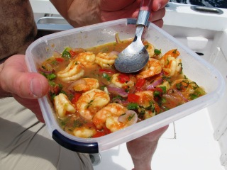 The one thing you can always count on when the fishing is tough on a guided trip is a good lunch. It’s the same whether you’re in Jackson Hole on the Snake River or in the Galapagos. As we dragged the teasers through the area we saw the marlin over and over again with no luck, Ronnie made us fresh shrimp ceviche that was to die for.