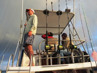 With the lack of marlin yesterday in mind, Braden and his crew took us on a long ride to Bank 88, a boat ride of exactly 68 miles that takes more than two hours. Bank 88 is an underground mountain range of about 4 miles long and 2 miles wide where the ocean goes from thousands of feet deep to a shallow 400. Best of all, this unique location just about always holds plenty marlin.