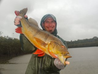 At the first stop he landed a beautiful 6lb butterfly peacock and later landed this 10lb peacock. Even with my sickness I enjoyed Warpath appreciating his big fish. It was a sight to behold! If I remember correctly we caught a few piranhas, picua, jacunda and some trahiras. I’m sad to say there are no other pictures because it down poured ALL day. Even my waterproof Pentax fogged up and was worthless.