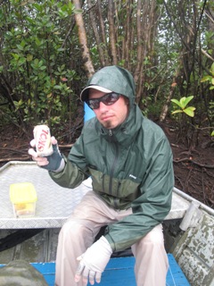There’s only one thing worse than being sick on an exotic fishing trip – being sick on an exotic fishing trip without proper medicine in pouring rain. I’m sick as a dog. My throat is toast. My voice is gone. My sinus is clogged and I ache all over. I’m absolutely miserable. I may as well be in the jaws of a caiman.