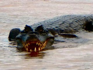 There’s only one thing worse than being sick on an exotic fishing trip – being sick on an exotic fishing trip without proper medicine in pouring rain. I’m sick as a dog. My throat is toast. My voice is gone. My sinus is clogged and I ache all over. I’m absolutely miserable. I may as well be in the jaws of a caiman.