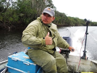 Warpath rarely stops talking. As we left camp he was unfazed by the rain and I’m not sure he noticed I wasn’t responding to his jabber. We fished with a top guide today named Hymundo. Hymundo knows how to find big peacock bass and he was in fact the guide who put me on to my huge redtail catfish in December of 2011.