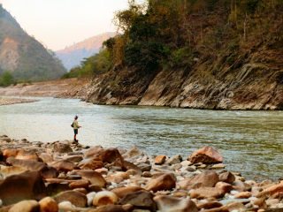 No one was dazed anymore. We were wide awake. I held one of the most beautiful and memorable fish of my life while Chris filmed and Klug shot stills. Then I removed Misty’s brown sculpin pattern and turned this incredible creature back to the Mahakali River. Man this is going to be an incredible segment!