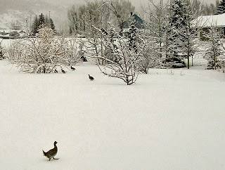 Today’s photo is my backyard full of sharptail grouse. They show up during the first winter storm every year and demolish all my crab apples. Fun to watch but they better be careful, I like a little upland bird hunting now and then!