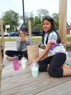 After we released the micro snapper we rapped things up fishing wise. We’d made big plans to stop in the famous Yum Yum Shop for the even more famous frosted gingerbread men. They were closed! The girls settled for cookies and drinks from the coffee shop.