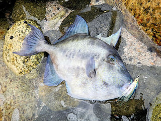 Our action from the rocks was far better than the other day. Perhaps it was the overcast. Perhaps it was because it was calmer. I’m not sure but in saltwater, it’s important to take note of everything from tides, weather and other conditions when things are good. I ended our session with this unusual finescale triggerfish.