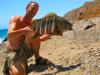 Finally I could see bottom again. I was exhausted like the fish but eventually I could stand. I had line tangled around my feet and every rock. Waves were crashing and knocking me around but it was time for the moment of truth. I hand of handed my remaining line as I stood waist deep in the crashing waves and in came a tired snapper. It was a striped pargo about 8lbs! It may not sound like much but trust me, catching a snapper of this size in the rocks on a fly is a feat. And it is the stripped pargo that holds the reputation as being the toughest of all – and was he ever! This was a fish I’ve dreamt of catching on previous trips to Baja but was beginning to feel it was impossible. I picked up the toothy fish and ran to the beach. I grabbed my camera and shot numerous pictures. Then, I dislodged the fly from his strong jaws and released him.
