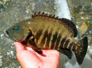 I was literally shaking as I retied my rig. I went with a straight chunk of 30lb Rio Saltwater Tippet directly to my fly line and loop knotted on a fly Grant gave me for roosters. Back I went prowling with casts to every sunken rock I saw. Within minutes I was popping pics of a gorgeous flag cabrilla. I was definitely taking a roosterfish break for a few hours.