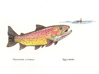 Office work for me ranges from organizing my 2018 speaking tour (travel logistics and scheduling is a challenge), catching up on writing projects and also doing what I enjoy most, painting fish.  After the day on the Yellowstone River I was inspired to paint this rising Yellowstone cutthroat.  This is a 7” x 9” watercolor with pen and ink that I’ve already taken to the framer.  Unless it sells beforehand, it will be some nice decoration for my booth when the 2018 show season kicks off.