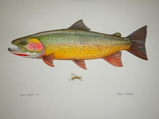 I also completed a larger painting (14” x 20”) of a Snake River Cutthroat.  This one is a commissioned piece for angler Ted Jablonski of California.  Ted placed his order in July right after he caught it on his visit out this way.  I don’t paint much in summer so I promised it to him by October.  Thanks goodness for this bad weather!