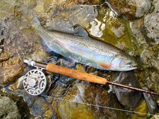 Yesterday we fished a new river in Slovenia named the Nadiža. A stunningly beautiful river but very few fish. I caught more soufie than trout. However the two rainbows I caught were big and both absolutely smoked me on my 4-weight Ross Rx.
