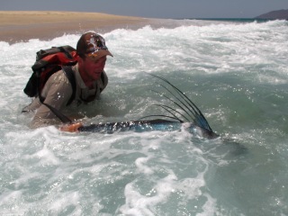 I’ve been coming to Baja for almost twenty years now. I love to catch all kinds of cool fish, but the main target is generally roosterfish. I take roosterfishing a step further and go for my roosters off the beach – sight casting only. It took me eleven days to catch my first quality rooster off the beach back in 1996. When I say quality, at that time quality was a rooster over 15lbs.