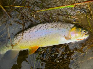 We could have left then but I had to take a crack at the two remaining risers.  It took me two false casts before I was asking myself why I hadn’t been to Flat in years.  I love this kind of dry fly challenge and a minute later I set the hook into a 13” cutty.  After releasing him I grabbed a seat and waited for the last remaining cutty to start rising again.  Once he did I got him also.