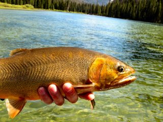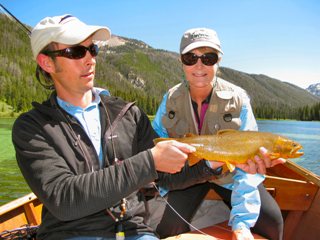 After several fantastic cutthroats Trey released himself on the bank to go check up on the rest of the school. Sue and I weren’t leaving the lake for anything and I guided her through the early evening. I haven’t guided in years but it was an absolute blast. We only caught two more fish; but that’s because the lake turned to glass. The last thing you want when fishing a lake is for it to be glass. Every move we made the fish saw. It was excellent for Sue however. She could see the fish much more clearly and really enjoyed observing the cutthroats feeding behavior. We watched them crushing grey drake nymphs. Sue also got to see how subtle a move you could make yet still send a cutthroat running!
