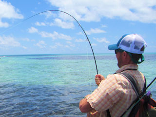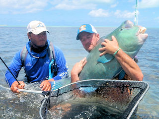 The fight from a bumphead parrotfish is no less than terrifying.  They don’t look like they’d be fighters when seen wallowing across a flat, but trust me, they take off like a train and if you don’t stop them they break you off in the coral.  It takes guts to try to stop them.  I was using my 9-weight and when I locked up my Bauer Reel my Winston was bent from tip to cork, stressed to its maximum.  You better have a good rod or it will shatter for sure!