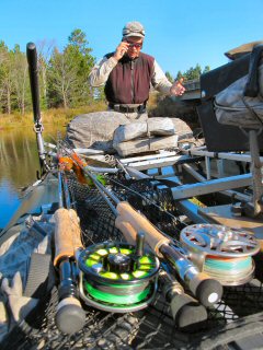 While most our group simply wants to catch a musky, Rick and I are going for them on the fly. To help us with our difficult quest, George booked Rick and I with top musky fly fishing guides. I’m fishing with Bill Sherer, owner of the We Tie It Fly Shop in Boulder Junction, Wisconsin and Rick is with Bills friend and guide John Coolidge.