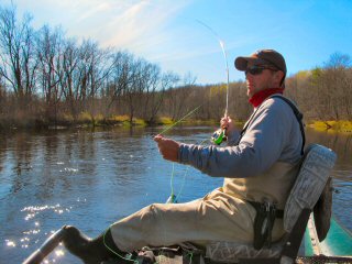 Although the rivers are much different and the gear and fish are bigger, you’re still casting streamers to structure all day long. If it wasn’t for the fact that you need to strip set on muskies like you do a tarpon, the tactics are similar to streamer fishing my home waters for brown trout. Therefore knowing where to cast was easy. Even better, the fact that this is one of Bills secret rivers, I got the heads up of exactly where certain fish lived. But even with all my fishing experience and Bills knowledge of this river, musky fishing was slow. The reason was the weather. As much as we enjoyed the delightful day, the drastic change from cold and wet to sunny and warm is not good for musky fishing. Today I got skunked.