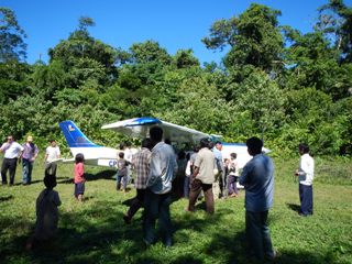 We landed on a narrow grass strip to an audience of locals. They don’t see much from the outside world so when the plane lands it’s always a big deal. The river was next to the landing strip so we unloaded our gear from the plane right to long dug out boats and made a short run to the lodge.