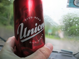 blog-June-6-2013-6-Slovenia-beerAs I released my barbel it started to pour.  Our nice day was long gone.  The rain was so bad that Vladi and I drove around and I sucked a couple beers.  We sat out the downpour for three hours.