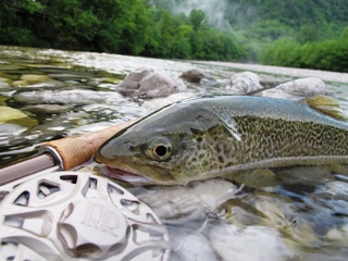 blog-June-6-2013-7-marble-trout-in-ItalyI needed one of these fish.  Rather than hastily casting I observed for ten minutes.  All I could see were the lips of the fish breaking the surface.  I couldn’t see the actual.  I thought they might be chubs.  However, during the next half hour I landed two scrappy 17” marble trout on a parachute Adams and a third that I sight nymphed.  What a great unexpected day of fly fishing in Italy!