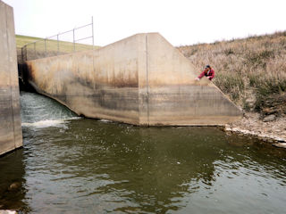 Our next stop was a short hike down a grassy hill to the spillway of the Lake. Oak Creek is tiny but right below the dam was a promising looking deep pool. Larry hung over a cement ledge and covered the water well but nothing cooperated.