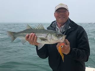 I’ve caught plenty of stripers from growing up here in New England but I’ve never got a big one over 30”. Bob is confident that this will happen before the end of the week. Along with us today is another Cape Cod pal of mine, Rick Wilsterman.