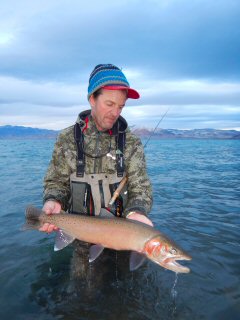 Longtime friend Jon Spiegel fished nearby off a point. I streamer fished like last night while Jon went with a nymph and a bounce bugger under an indicator. While I had some follows and fish that teased me on the hang, I couldn’t get a Lahontan to commit. Jon on the other hand hooked into one that put a serious bend in his rod.